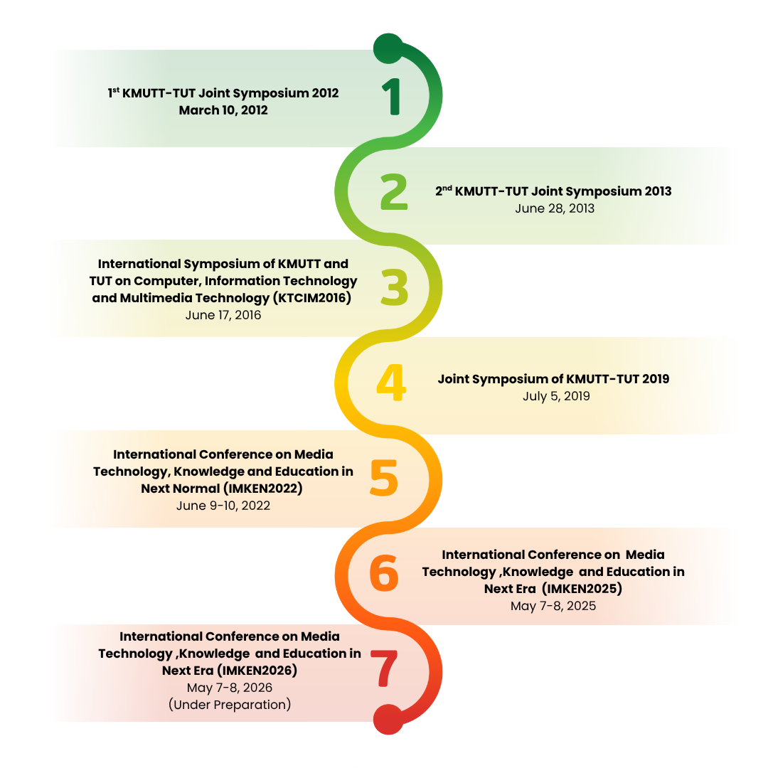 IMKEN2026, it was the cooperation between Division of Computer and Information Technology (CIT), Faculty of Industrial Education and Technology, King Mongkut’s University of Technology Thonburi (KMUTT), Thailand and School of Media Science, Tokyo university of Technology (TUT), Japan since 2012. First it was set as a symposium between two organizations that take turns as host. Right now, it is the duty of CIT’S turn to take action, and there is a new host joining, department of Packaging and Printing Technology (PPT) and Department of Educational Technology and Communication (ECT), KMUTT. This time it has been an international academic conference and extends the relationship of multimedia to global for interested parties to exchange and present their works in this field.